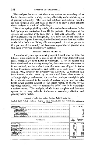 Analysis of water from Astorg Spring, Lake County, Cat.