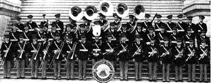 Southern Pacific Band assembled on the steps of Southern Pacific Railroad Hospital, Baker and Fell streets, for this early 1930s photograph. For more about Southern Pacific, see the San Francisco History Index.
